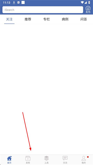 1、打開輕盈醫(yī)學(xué)APP,點(diǎn)擊導(dǎo)航欄中的發(fā)現(xiàn)。