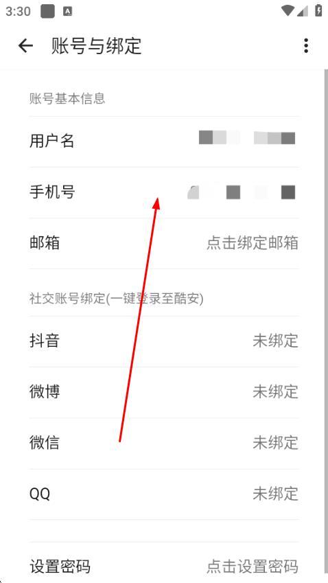 4、在賬號與綁定頁面里,點擊手機號選項。