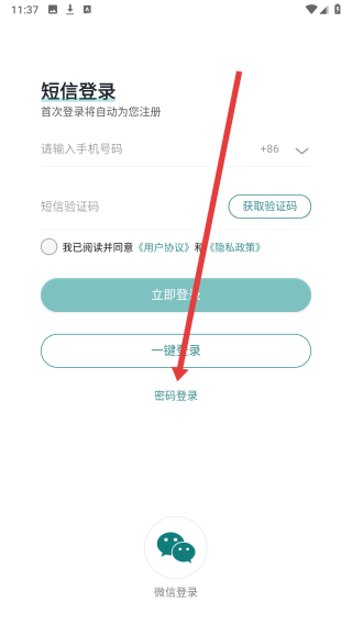 2、在進(jìn)入到登錄頁面后,可以點(diǎn)擊下方的密碼登錄按鈕,切換登錄方式。