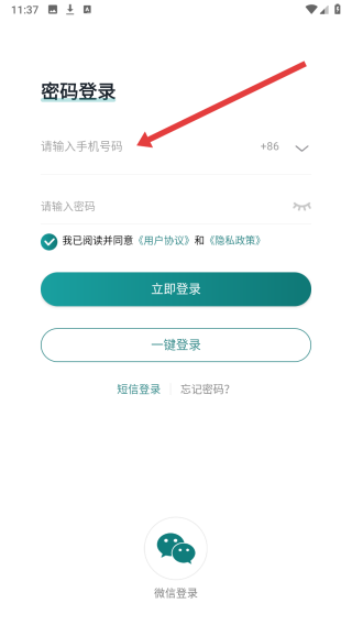 4、在勾選完按鈕后,點(diǎn)擊輸入框依次輸入手機(jī)號碼與密碼后完成登錄。