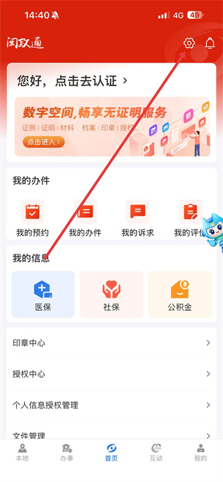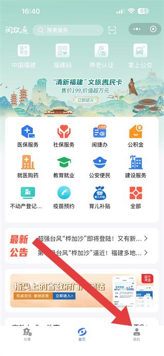1、打開閩政通APP,點擊頁面底部右側(cè)的我的選項,進入個人頁面。