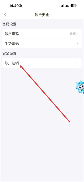 4、在賬戶安全頁面里,點擊安全設(shè)置下的賬戶注銷選項,按提示完成賬戶注銷操作。