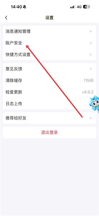 3、在設(shè)置界面中,找到并點擊賬戶安全選項,進入賬戶安全頁面。