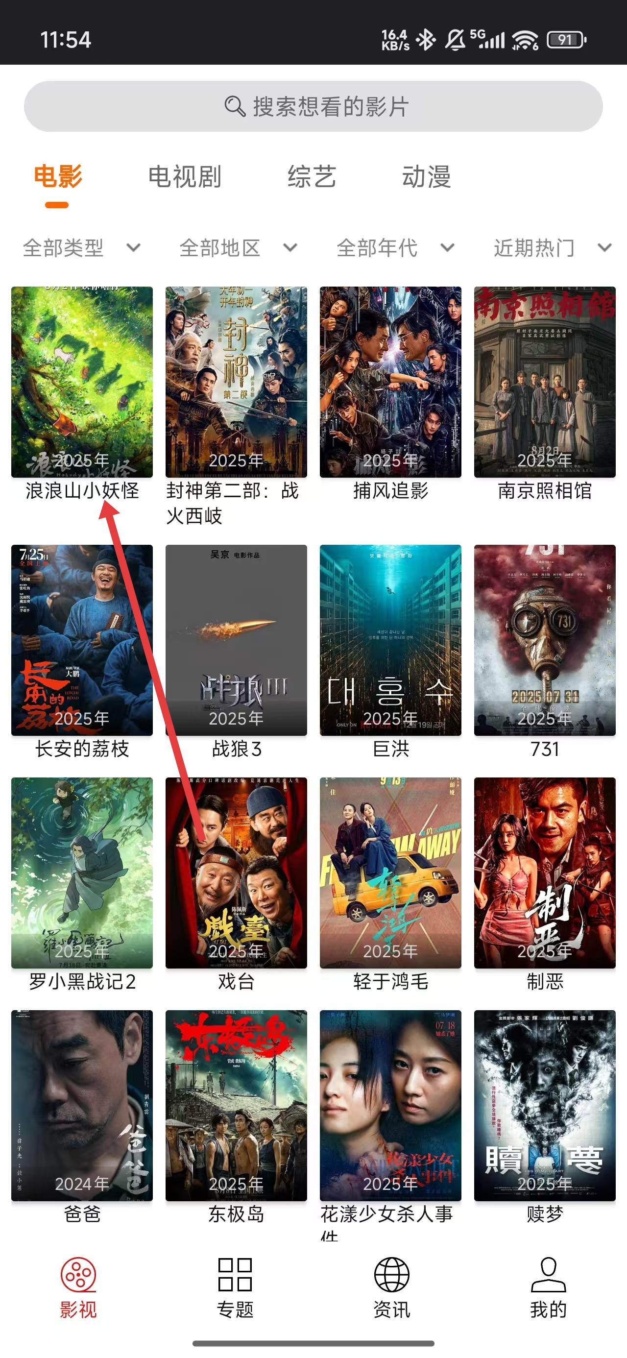 1、在進(jìn)入到應(yīng)用首頁中,可以選擇點擊喜歡的電影進(jìn)入觀看。