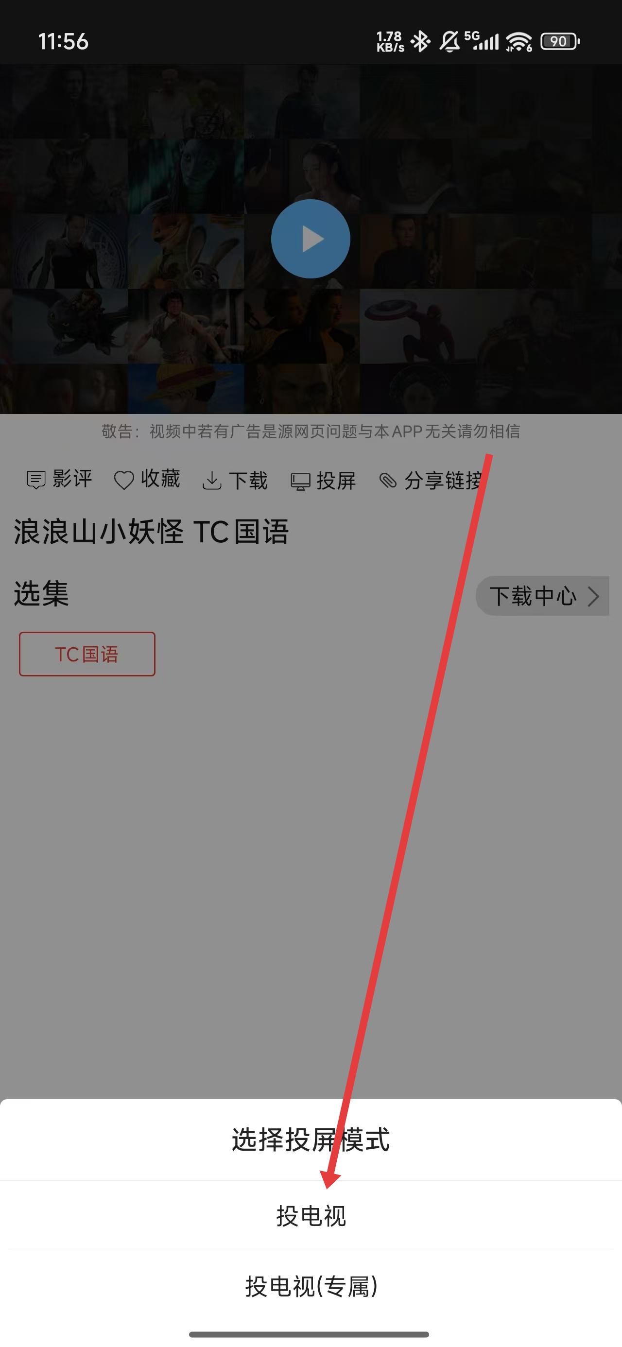 3、可以在點擊投屏按鈕后,點擊選擇投電視選項,進(jìn)行投屏操作。