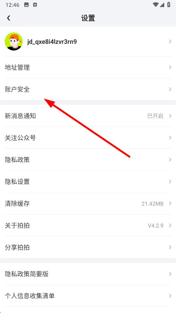 2、在設(shè)置界面中找到并點(diǎn)擊賬戶安全選項(xiàng),進(jìn)入賬戶安全管理界面。