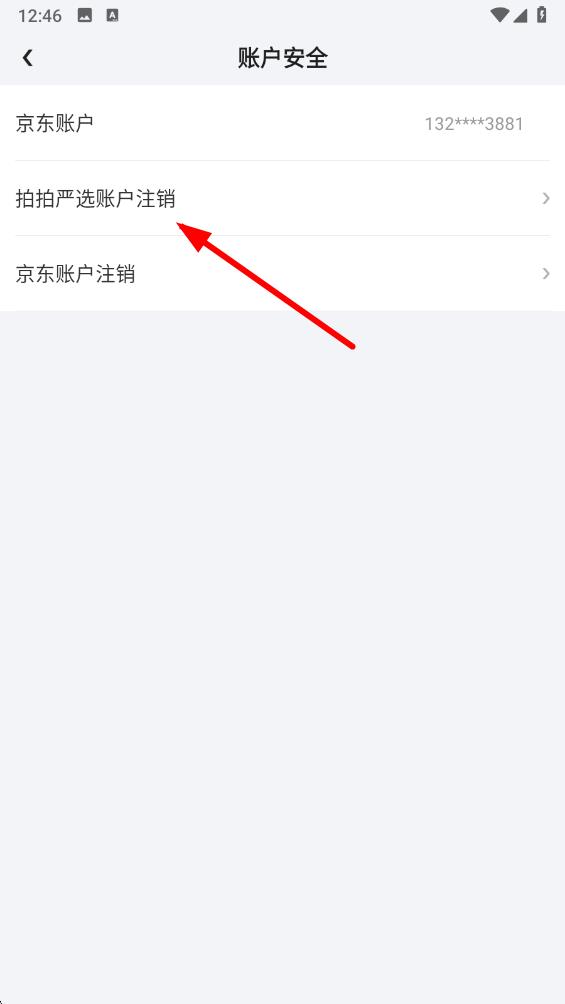 3、在賬戶安全界面里,找到拍拍嚴(yán)選賬戶注銷(xiāo)選項(xiàng),點(diǎn)擊進(jìn)入注銷(xiāo)流程,按照后續(xù)提示進(jìn)行身份驗(yàn)證等操作確認(rèn)注銷(xiāo)即可。