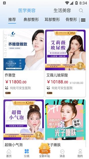 3、用戶們?cè)谄脚_(tái)上可以分別使用顧客版本和商家版本,作為顧客,可以在平臺(tái)上查看到海量的美容商品,在這里有非常多的美容服務(wù)可以選擇;