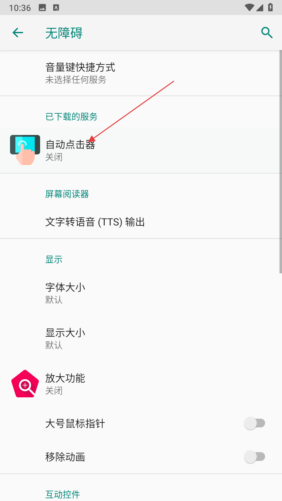 2、在無(wú)障礙設(shè)置的已下載的服務(wù)中,找到自動(dòng)點(diǎn)擊器并點(diǎn)擊進(jìn)入。