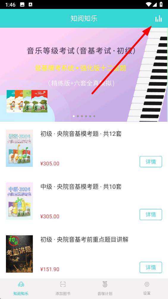 1、打開知閱知樂app,點(diǎn)擊首頁右上角的音樂播放圖標(biāo),進(jìn)入音樂播放界面。