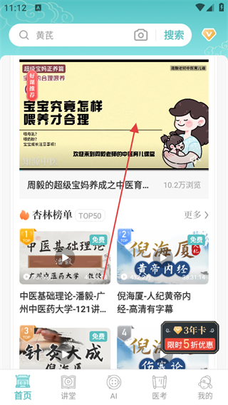 1、打開知源中醫(yī)APP,在首頁點擊想要投屏觀看的課程。