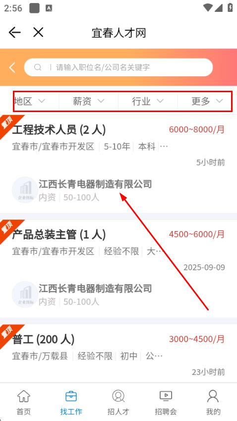 3、在職位列表頁(yè)面,可以根據(jù)地區(qū)、薪資、行業(yè)等條件進(jìn)行篩選,點(diǎn)擊感興趣的職位。