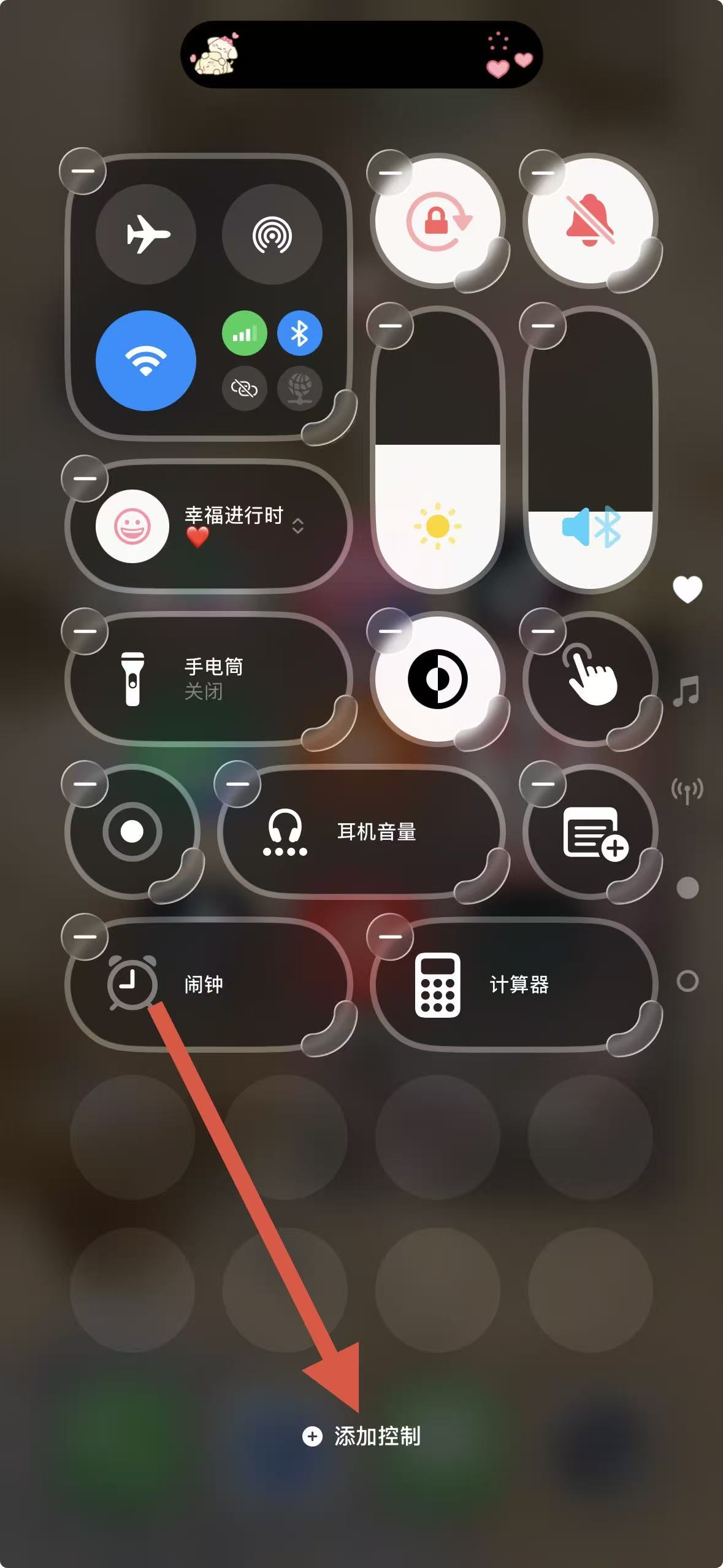 1、打開(kāi)手機(jī)控制中心,點(diǎn)擊下方添加控制選項(xiàng),進(jìn)入添加控制界面。