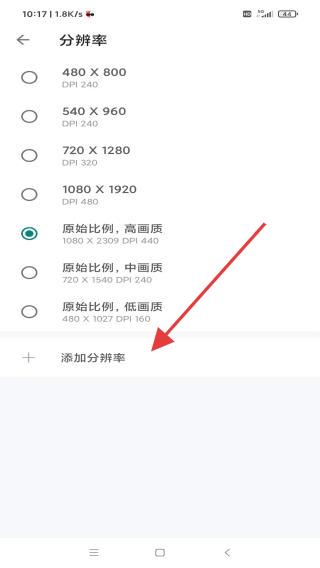 3、在調(diào)分辨率的頁面內(nèi),可點擊添加分辨率自行進行調(diào)整。