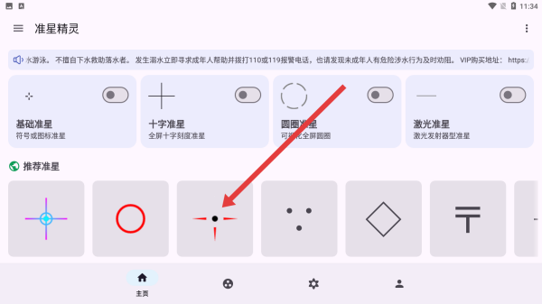 2、在推薦準(zhǔn)星區(qū)域,通過點擊選擇紅色十字樣式的準(zhǔn)星圖標(biāo),點擊該圖標(biāo)進(jìn)行選定。