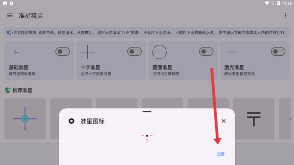 3、彈出準(zhǔn)星圖標(biāo)窗口后,可以點擊右下角設(shè)置按鈕,進(jìn)入準(zhǔn)星參數(shù)配置界面調(diào)整參數(shù)。