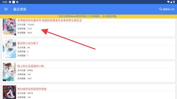 1、在最近更新的列表中,點(diǎn)擊想要閱讀的小說(shuō)條目。