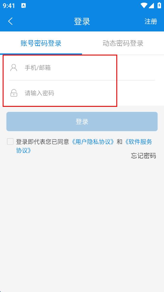 3、在登錄界面,依次在“請輸入您的手機號”和“請輸入您的密碼”輸入框中,填寫好手機號和密碼。