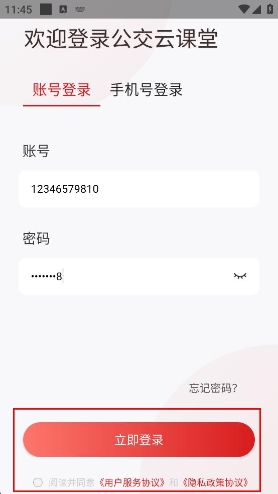 4、勾選“閱讀并同意用戶服務(wù)協(xié)議和隱私政策協(xié)議,然后點(diǎn)擊紅色的“立即登錄”按鈕。