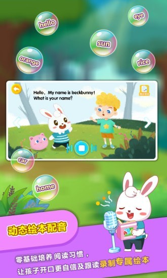 兔小貝abc針對國內(nèi)兒童的語言發(fā)展特點(diǎn),為兒童打造的趣味英語互動軟件。以培養(yǎng)孩子學(xué)英文的興趣與習(xí)慣為目的,讓孩子輕松自然地愛上英語。