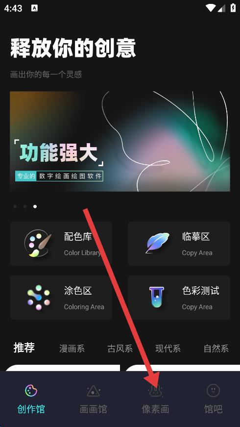 1、打開筆刷大師App,點(diǎn)擊底部導(dǎo)航欄中的像素畫選項(xiàng)。