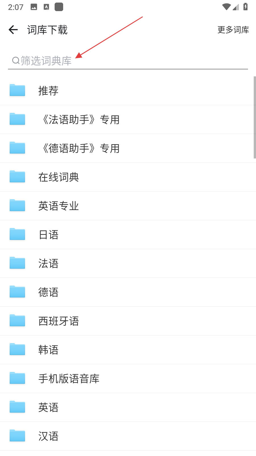 2、在詞典庫管理頁面,點擊詞庫下載按鈕,進(jìn)入詞庫下載界面。