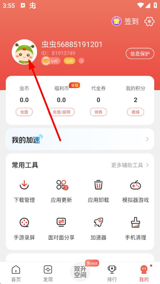 1、打開(kāi)蟲蟲助手APP,點(diǎn)擊底部導(dǎo)航欄中的我的選項(xiàng),進(jìn)入個(gè)人頁(yè)面。