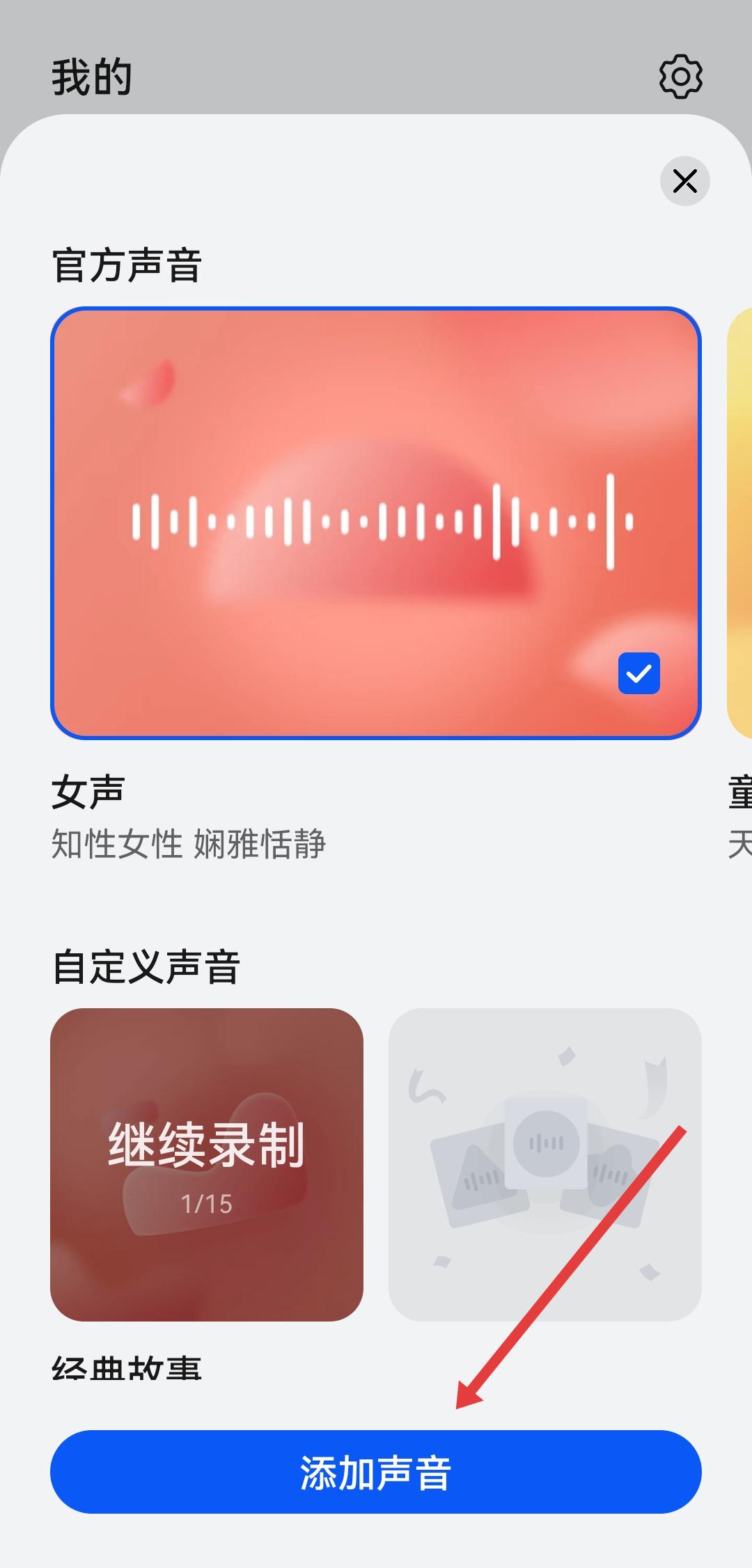 2、在聲音設(shè)置界面,點(diǎn)擊添加聲音的按鈕,進(jìn)入自定義聲音創(chuàng)建的流程。