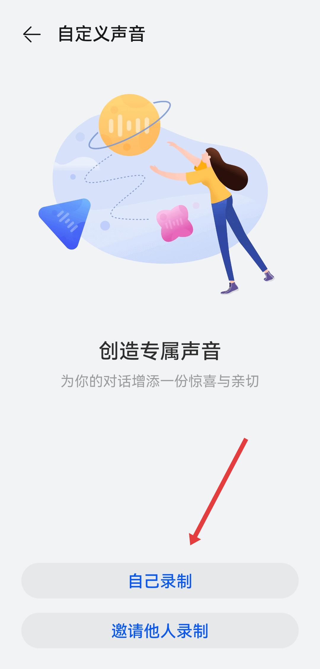 3、在自定義聲音的頁面,點(diǎn)擊自己錄制的選項(xiàng),選擇自行錄制專屬聲音。