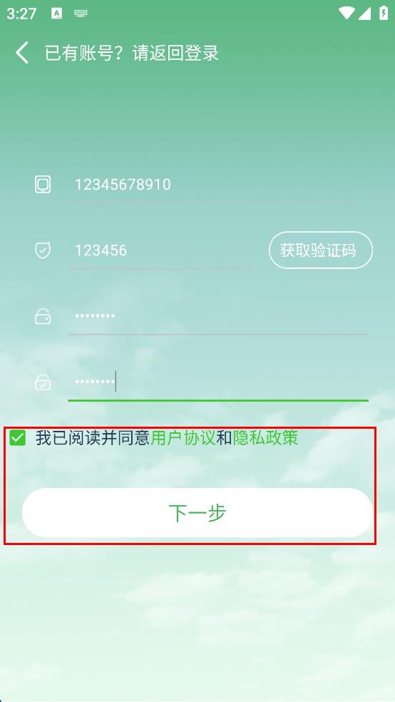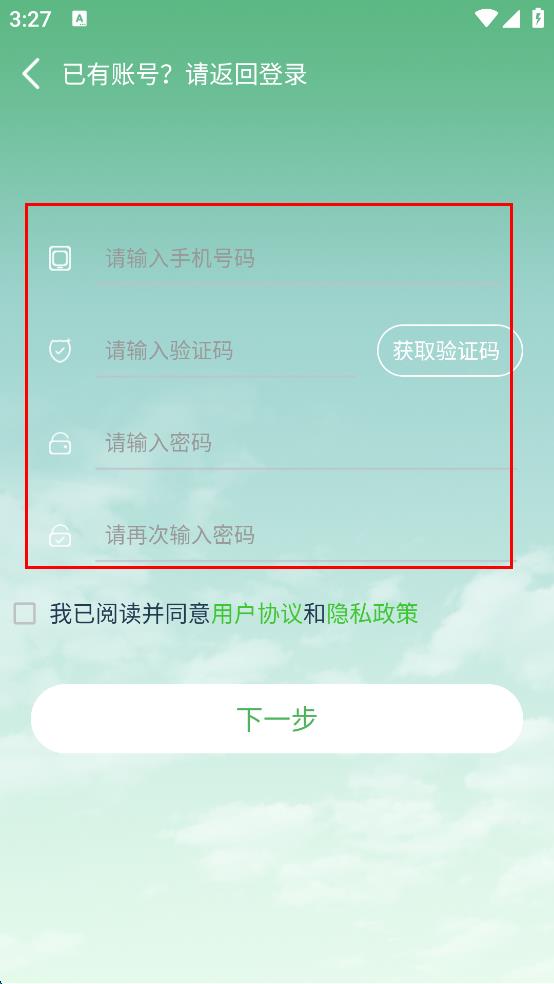 4、勾選我已閱讀并同意用戶協(xié)議和隱私政策,點(diǎn)擊下一步完成注冊(cè)。