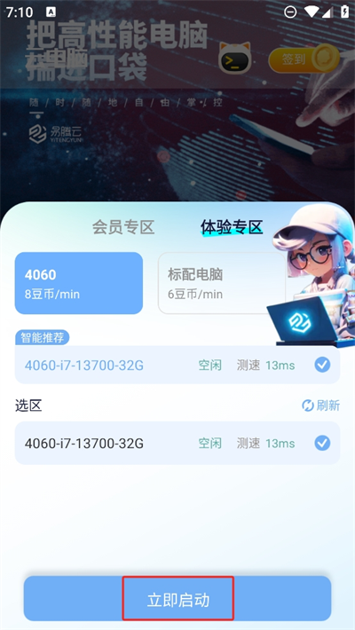 2、進入以后可以選擇不同的云端電腦專區(qū),我們選擇體驗專區(qū)并選擇立即啟動;