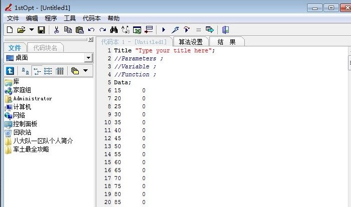 將數(shù)據(jù)復(fù)制入1stopt中,注意先在第五行加上Data。