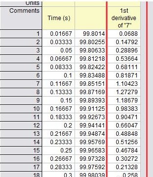 最后:點(diǎn)擊ok,一階導(dǎo)數(shù)曲線的數(shù)據(jù)在初始workbook中的最后一列自動(dòng)添加。