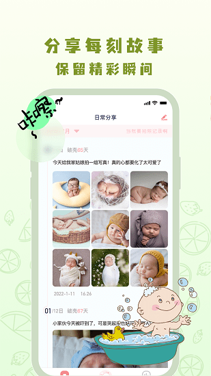 使用小視頻、照片、文字,記錄寶寶的成長點滴。