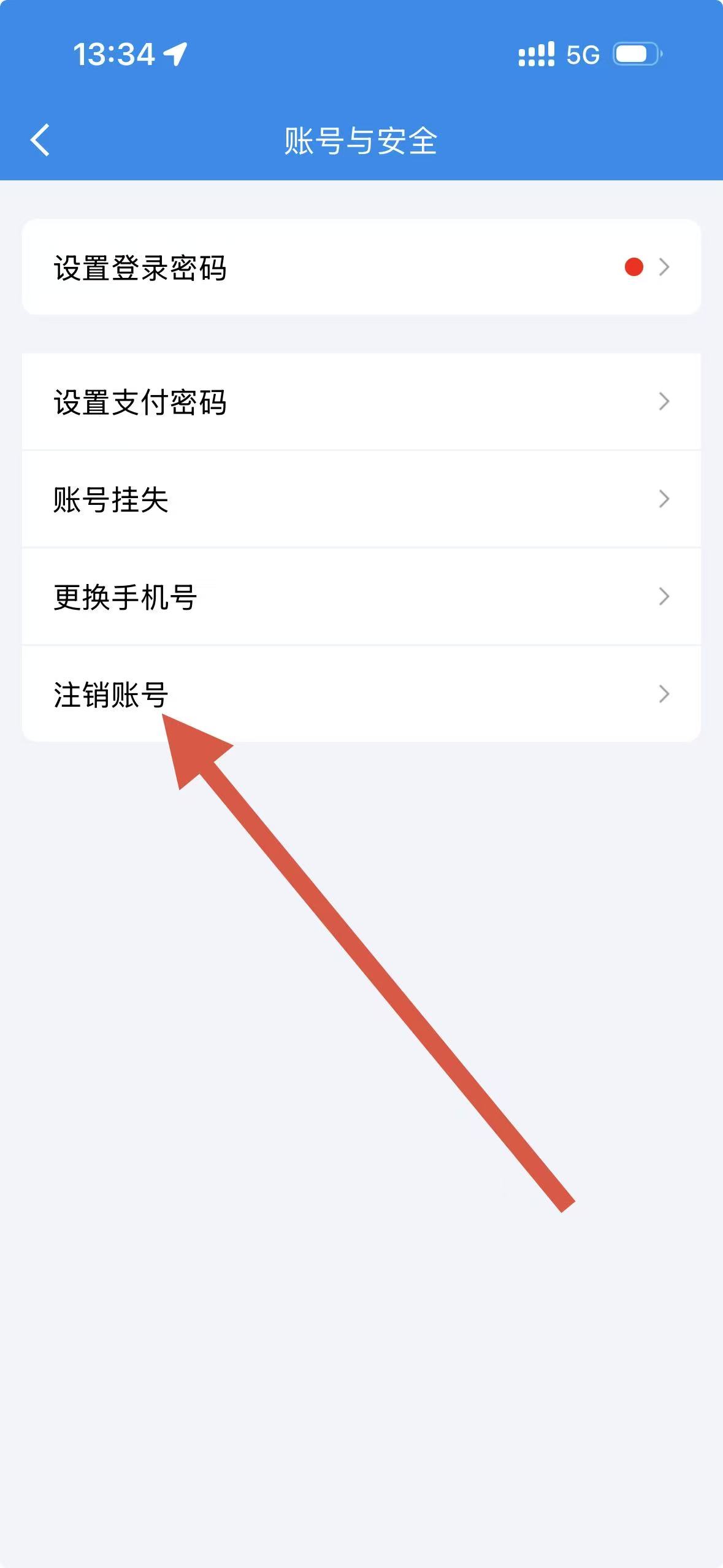 4、在賬號與安全頁面,點擊注銷賬號選項,完成賬戶注銷。