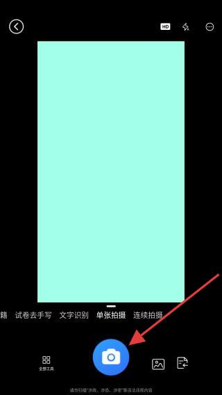 3、點擊底部藍色相機圖標(biāo),可選擇單張拍攝或連續(xù)拍攝,自動連拍多頁,適合文檔、試卷。
