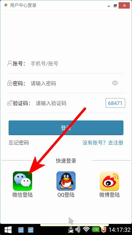 4、在用戶中心登錄窗口的快速登錄區(qū)域,點擊微信登陸圖標即可。