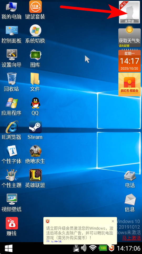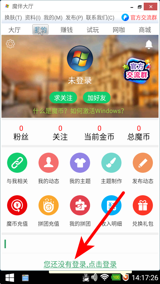 1、在魔伴桌面主界面,點擊右上角未登錄圖標。