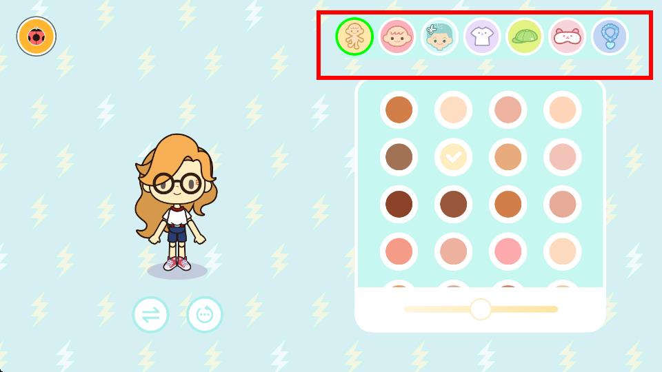 3、選中角色后,界面上方會出現(xiàn)一排裝扮圖標(biāo),點擊這些按鈕,下方會彈出各種可切換的圖標(biāo),按需選擇搭配,就能完成人設(shè)的捏制。