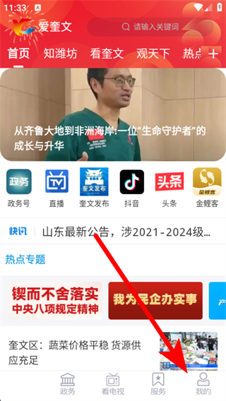 1、啟動(dòng)愛(ài)奎文app,在首頁(yè)點(diǎn)擊底部我的按鈕,進(jìn)入個(gè)人中心頁(yè)面。