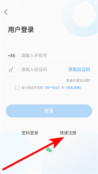 3、在用戶登錄界面選擇快速注冊(cè)按鈕,進(jìn)入用戶注冊(cè)的頁(yè)面。