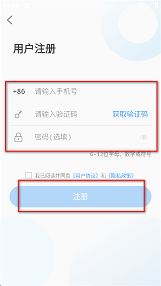 4、在頁(yè)面依次輸入手機(jī)號(hào)等信息,然后點(diǎn)擊注冊(cè)按鈕完成注冊(cè)。