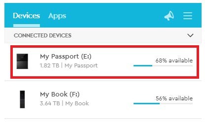 5、由于安裝了WD Drive Utilities,已連接的外部驅(qū)動(dòng)器將會(huì)自動(dòng)被wd discovery識(shí)別到,單擊驅(qū)動(dòng)器以訪問(wèn)內(nèi)容。