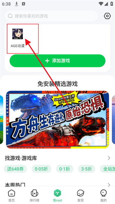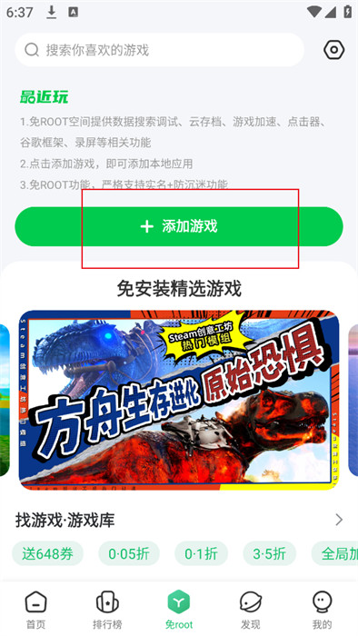 2、隨后,點(diǎn)擊中間的綠色按鈕【添加游戲】,會(huì)自動(dòng)跳轉(zhuǎn)頁面;
