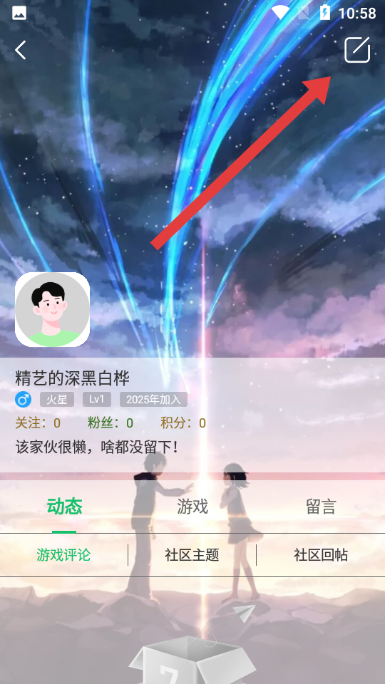 1、進(jìn)入我的頁面后點(diǎn)擊個(gè)人頭像區(qū)域,進(jìn)入個(gè)人空間的頁面,點(diǎn)擊右上角編輯的按鈕。