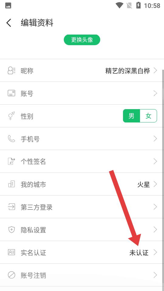 2、點(diǎn)擊編輯圖標(biāo)按鈕后,進(jìn)入編輯資料的頁面,找到實(shí)名認(rèn)證選項(xiàng)并點(diǎn)擊。