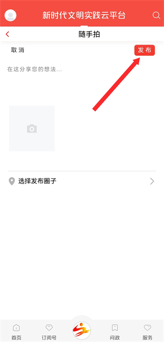 4、在隨手拍編輯頁(yè)面,可添加圖片等,完成后點(diǎn)擊發(fā)布即可。