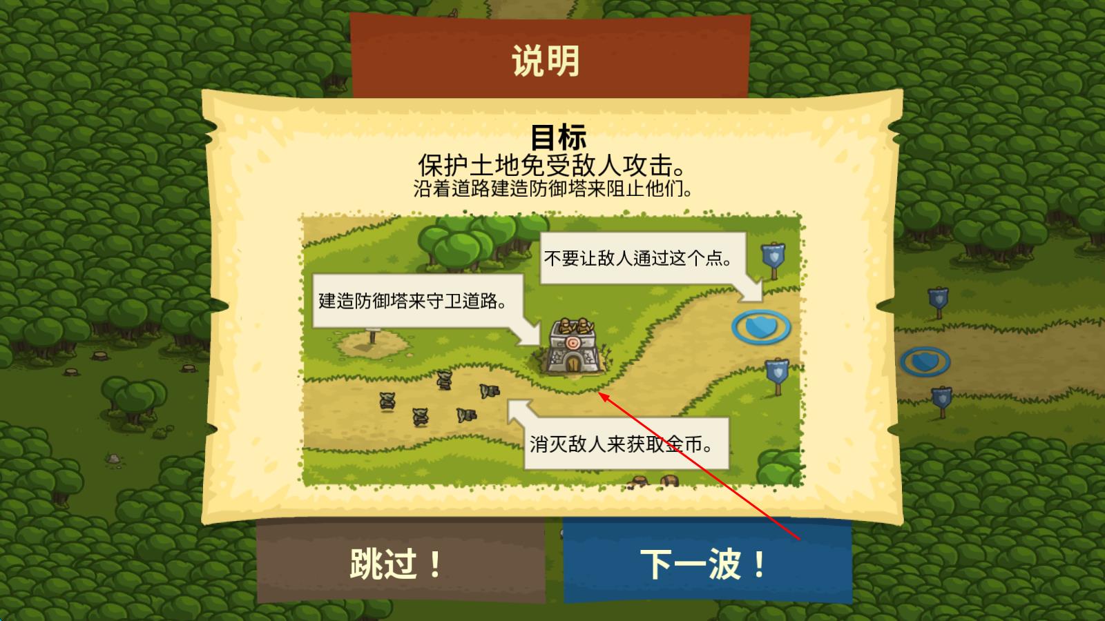 1、進入游戲后,先觀察關(guān)卡地圖,確認敵人進攻路線與可建造區(qū)域,用初始金幣搭建基礎(chǔ)防御塔(如弓箭塔),開啟首波防御。