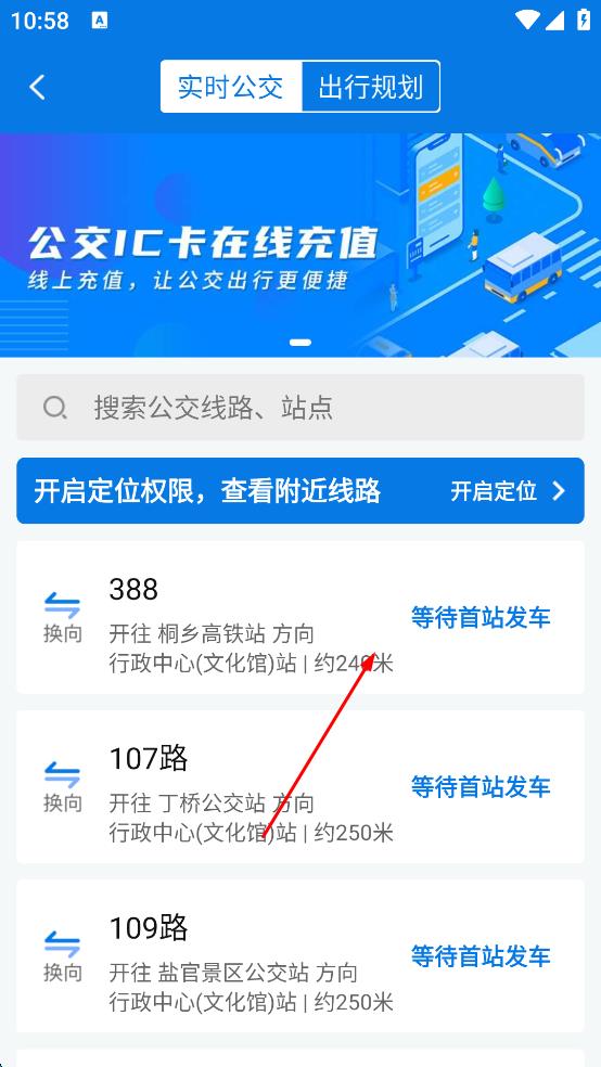 2、在實時公交列表,選擇要乘坐的公交線路,如388路,點擊進入該線路詳情界面,了解站點和發(fā)車情況。