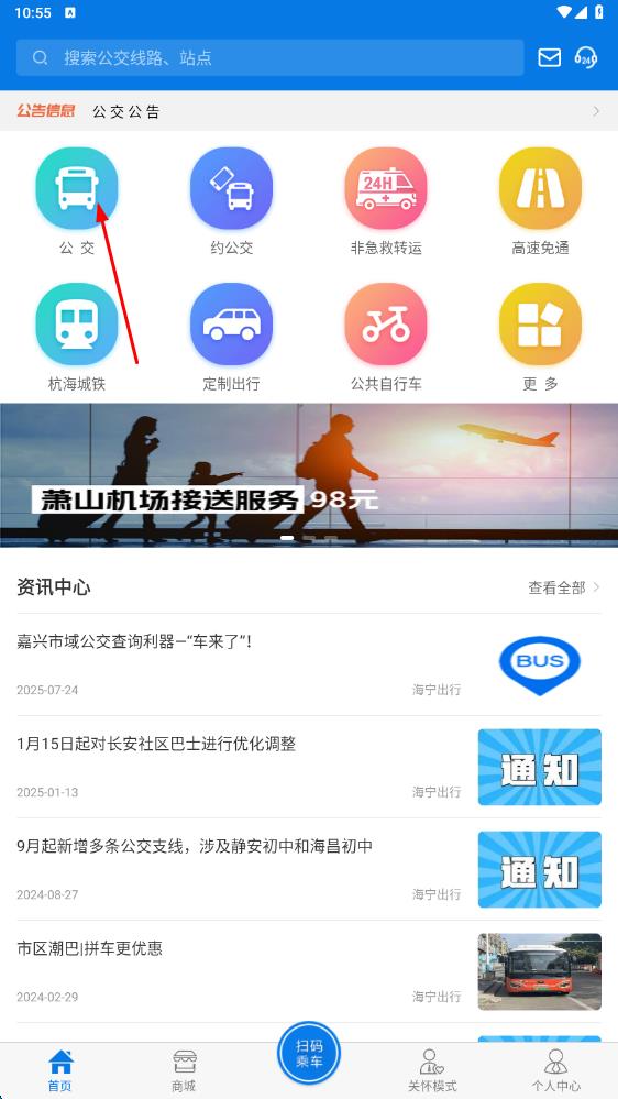 1、打開出行軟件,在首頁功能區(qū)找到“公交”圖標(biāo),點擊進入公交服務(wù)頁面,查看實時公交信息。